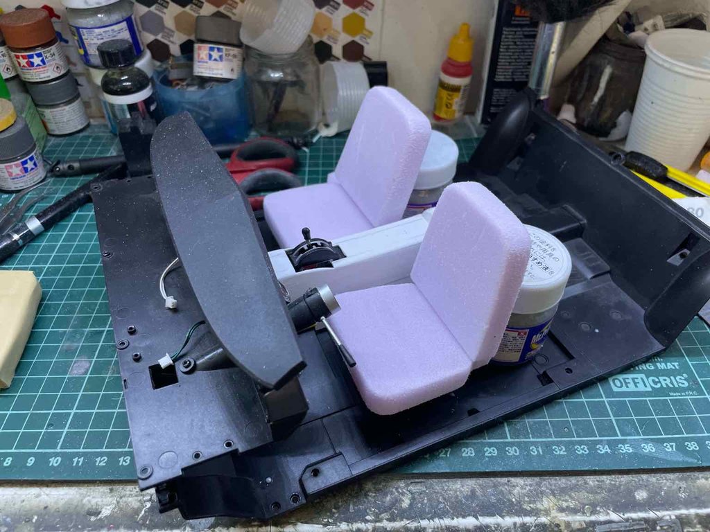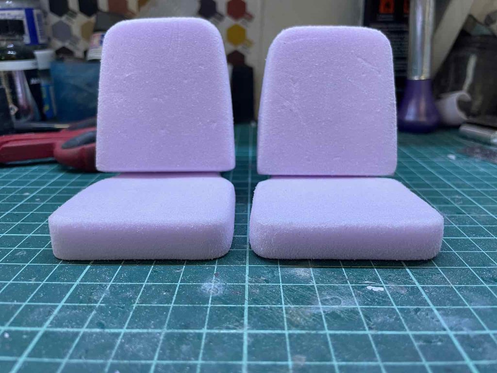 Ho iniziato dai sedili anteriori, intanto solo la base realizzata con polistirolo compatto XPS