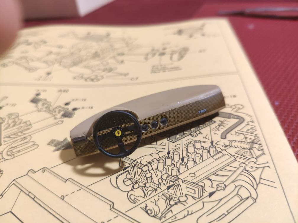 Seguendo le indicazioni di questo formidabile forum ho fatto atto di fede e ho reso l'abitacolo molto più aderente alla realtà. La vasca della F50 era completamente realizzata in fibra di carbonio e con una strumentazione davvero spartana.