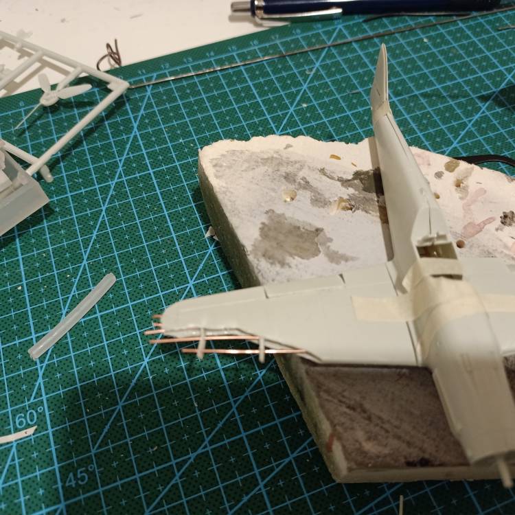 Buonasera stasera sono andato avanti con il messerschmith ho cercato di ricreare la struttura sotto le lamiere e cercato di ricreare una situazione di un aereo abbattuto ecco due foto di una prova a secco.Allegato 403032Allegato 403033Allegato 403034