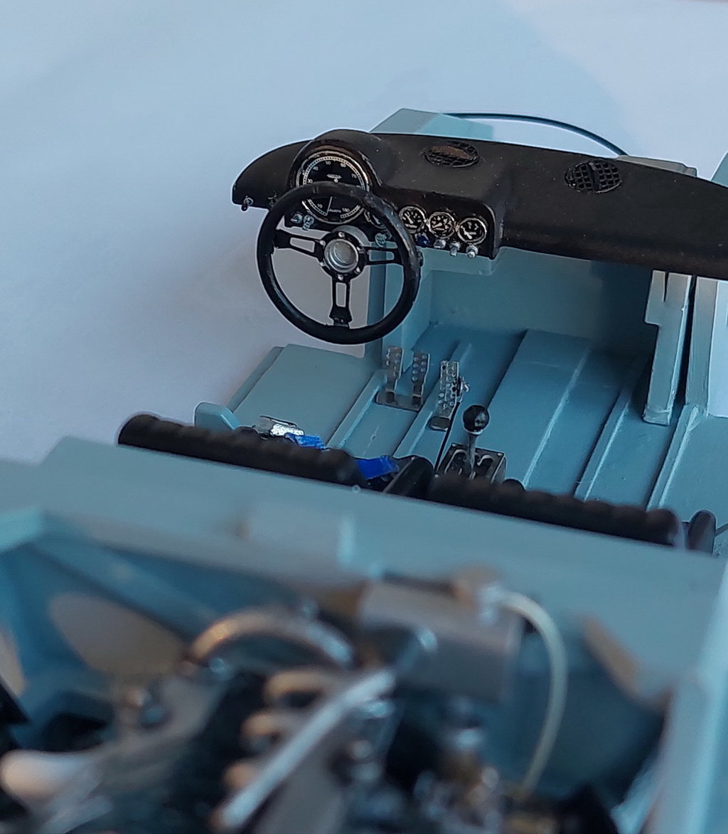 Ho iniziato ad assemblare gli elementi dell’abitacolo: ho inserito i sedili, leva cambio e poi i pedali. Di questi ultimi quelli di freno e frizione sono raggruppati mentre quello dell’acceleratore, come detto nel mio post #19 è separato. Gli ho collegato il cavo che va ai carburatori che risulta essere a vista come si vede nella foto del mio post #18.