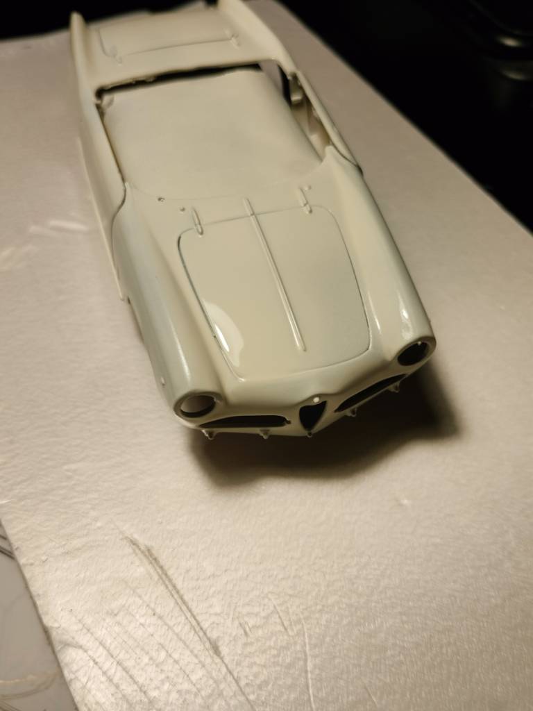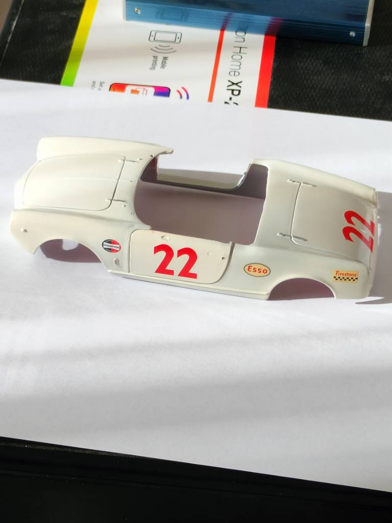 Sono arrivato qui. La carrozzeria è lisciata, data la mano di fondo e la tinta Tamiya racing White. Prossimamente una passata leggerissima di carta ad acqua e poi passiamo alle decals e al trasparente.