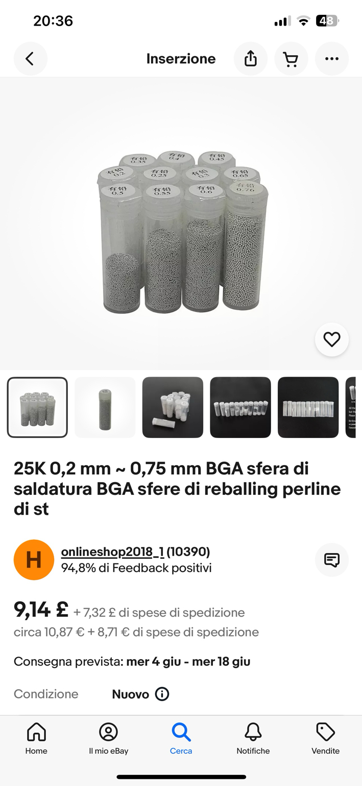 Per quanto riguarda le solder balls, le ho prese su Amazon (prima foto) e su eBay per quella più grandi (altre foto)