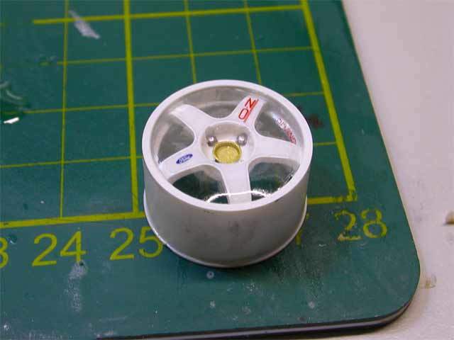 Passiamo ai cerchi. Ho pensato di realizzare questo diorama anche xe' avevo un'idea x creare l'effetto della rotazione dei cerchi, ed ho cercato di realizzarla come meglio potevo.Sono partito dai cerchi verniciati e decalizzati