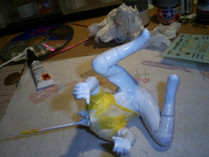 ho già dato di pennello secco con giallo e nero opaco nella parte gialla del pilotino, non l'ho ancora fatto per la parte nera, credo lo farò mescolando nero e grigio.