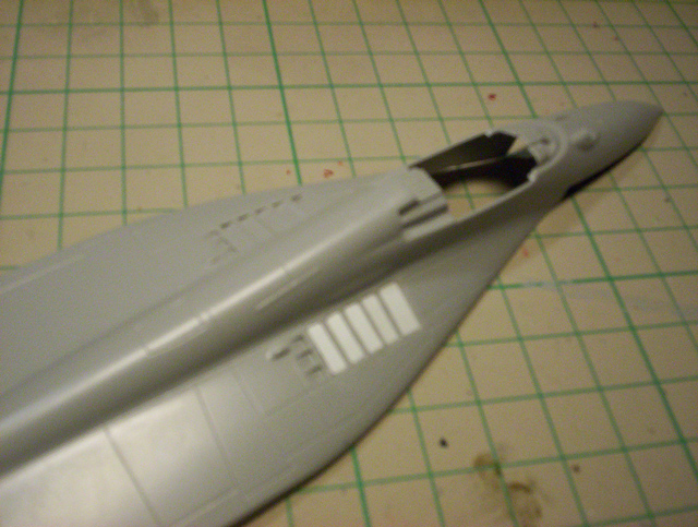 Il modello Italeri da solamente la possibilità di avere le prese d'aria ausiliarie in posizione aperta, questa configurazione si ha solamente a motori accesi quindi non adatte per la mia ambientazione