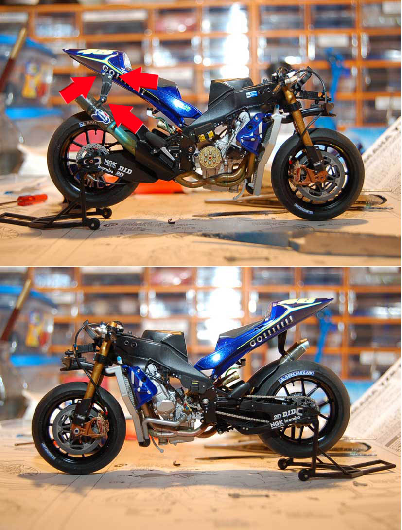 lapo sono così, tra l'altro sono segnate nella plastica, le uniche che ho aggiunto, probabilmente sbagliando perchè ho usato come riferimento una foto della NSR del 2001, sono quelle vicino al motore.