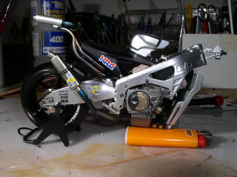 Compliemti, bel lavoro pulito per una moto che a mio parere è abominevole  ). Nonostante la mia avverisione a questo modello (per me rappresenta la arroganza honda contro i 2 tempi) l'ho comprata anch'io, nella versione telefonica e in scala 1:9 (un bel kit). Ti seguo con attenzione, con il kawa hai fatto un OTTIMO lavoro e con questa ci sono tutte le premesse.