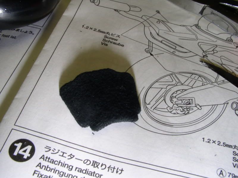Tra una parolaccia e l'altra nel relizzare il pedale del freno con quelle "stupide" fotoincisioni, ho provato a ricoprire la sella con la "stoffa" adesiva Hiro. Spettacolare. Dalle foto la grana sembra enorme causa la macro, ma da più distante si vedeva solo una macchia nera... :