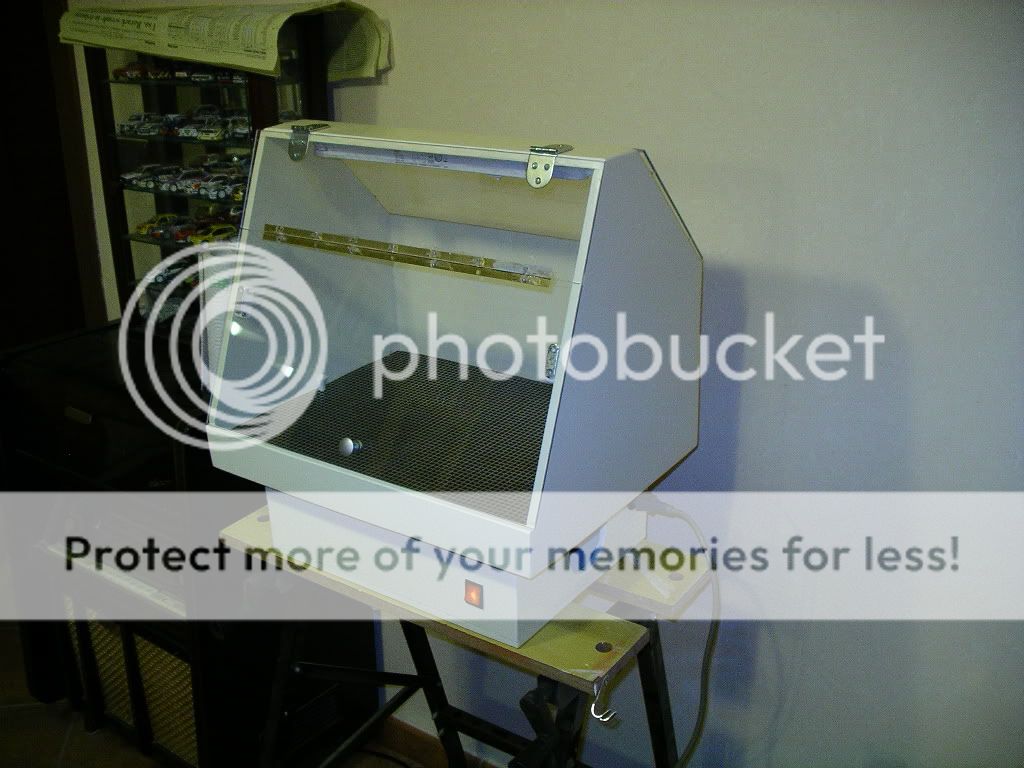anch'io a suo tempo ho costruito la cabina simile alla tua però mi stò accorgendo che il potere aspirante delle ventole nn è molto, forse come dicevano sarebbe meglio mettere le ventole nella parte superiore collegando poi un tubo di uscita che espelli l'aria altrimenti il puzzo rimane anche se cè il filtro, stavo pensando di rifarla mettendoci un aspiratore tipo quelli da bagno, vedremo.......