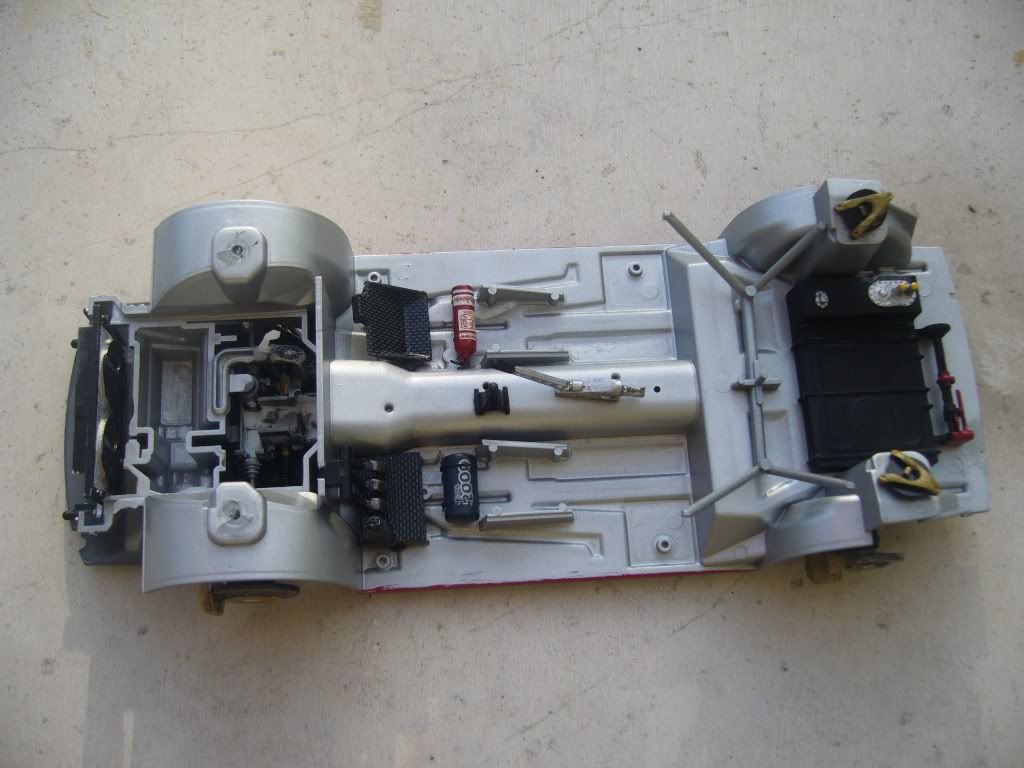 1) Cerchi: colora anche la parte laterale del bullone, non solo la testa. Non preoccuparti di sbavare un pò entrando nel "solco" tra bullone e cerchio, lì potrai fare un'ombreggiatura per simulare lo sporco che si ferma. Fai in questo modo: usa uno smalto per verniciare il bullone, fai asciugare e poi metti una goccia (piccola!!!) di nero acrilico molto diluito che, per capillarità, riempirà il solco. Lascia asciugare un pò e, con un cotton fioc imbevuto di chante clair, vai a rimuovere l'eccesso e a pulire il tutto. Fa davvero un altro effetto.