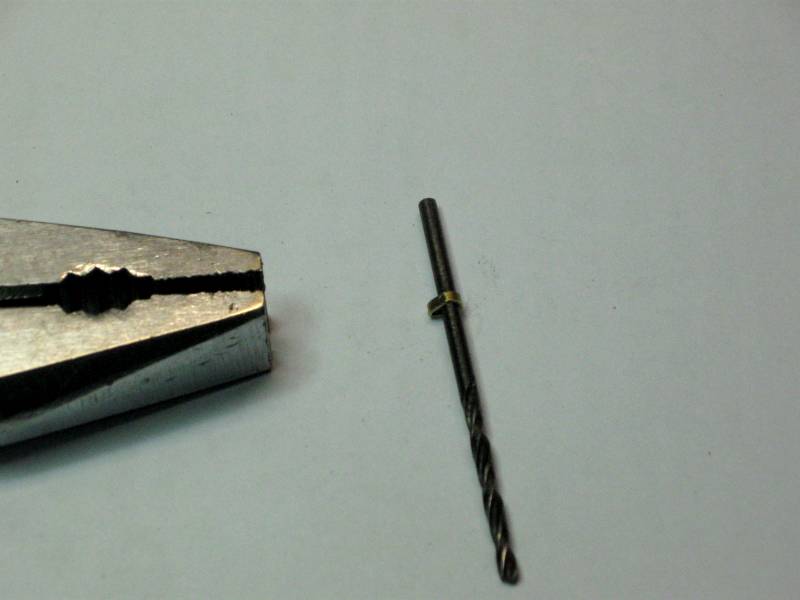 Ho utilizzato un tubetto da 2mm per la parte che chiamiamo albero, ho poi tagliato 48 pezzetti di tubetto da 3mm per le cammes, infilate una alla volta sul gambo di una punta elicoidale da 2mm e schiacciate con una semplice pinza, con l' attenzione di tenerle pressate contro la punta per evitare di fare un ellisse.