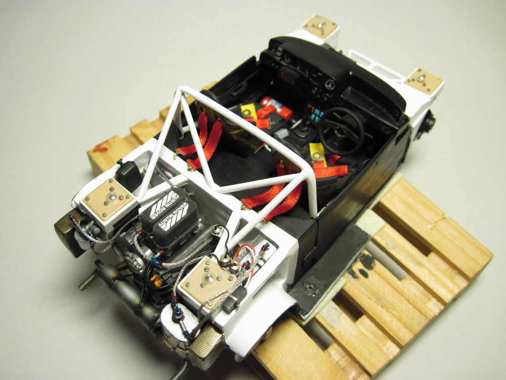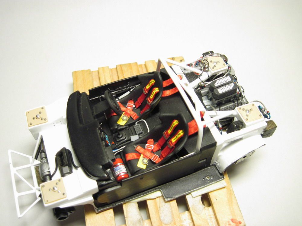 Per quanto riguarda l'abitacolo mi sono limitato a togliere i cavi stampati dal pianale e sostituirli con altri piu realistici, poi una bella mano di nero e il gioco è fatto.